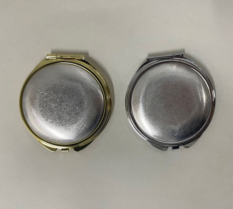 アルミ板を刺しゅう作品でくるみ、貼り付けていただくことでオリジナルコンパクトミラーが出来ます。
