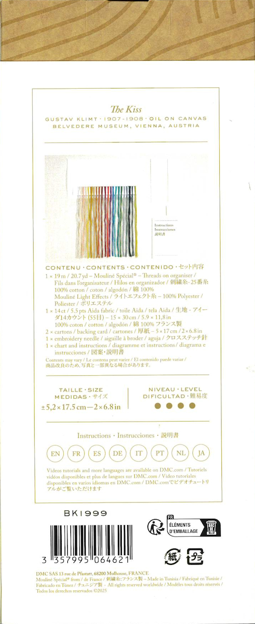 DMCクロスステッチキット 「THE KISS / GUSTAV KLIMT] グスタフ・クリムト 品番:BK1811 【出来上がりサイズ】28.5×28.5cm 【セット内容】 …
