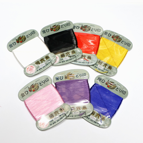 金ひどり印 絹穴糸(白黒・黄・赤・紫・青系)