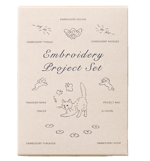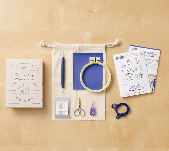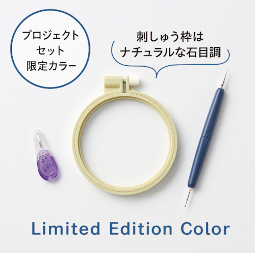 刺しゅうに必要な道具と、収納ボックス、プロジェクトバッグがセットになって、刺しゅうを始めたい方におすすめ!プロジェクトセット限定のカラーです。