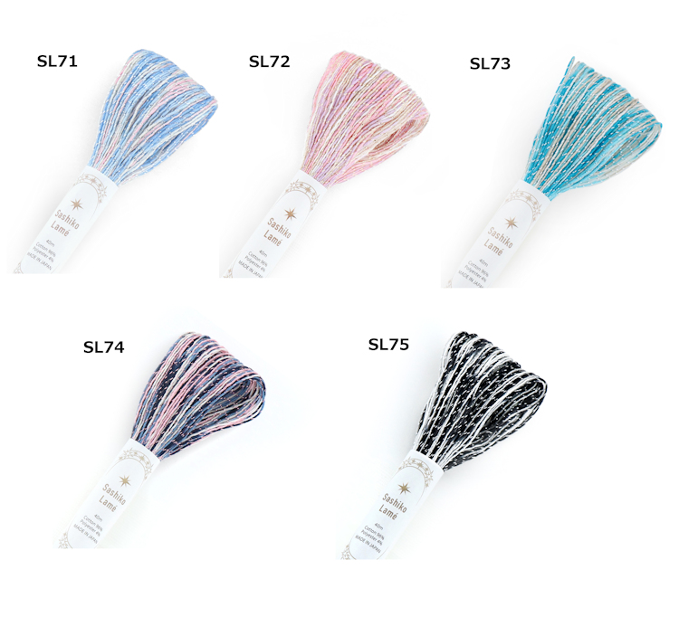 いつもの刺し子糸とは少し違った特別な作品を作りたい、そんなあなたへ贈る刺し子糸、「Sashiko Lame」に新しく多色染めの「カラフル」が追加されました。