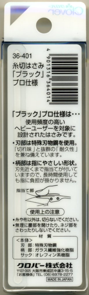 36-401 クロバー 糸切りはさみ プロ仕様 ブラック 10.5cm MADE IN JAPAN