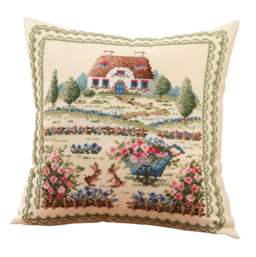[7766] オリムパス オノエ・メグミ 刺しゅうキットシリーズ タウン&カントリーの素敵な風景 クッション「田園の風景」 [6059]