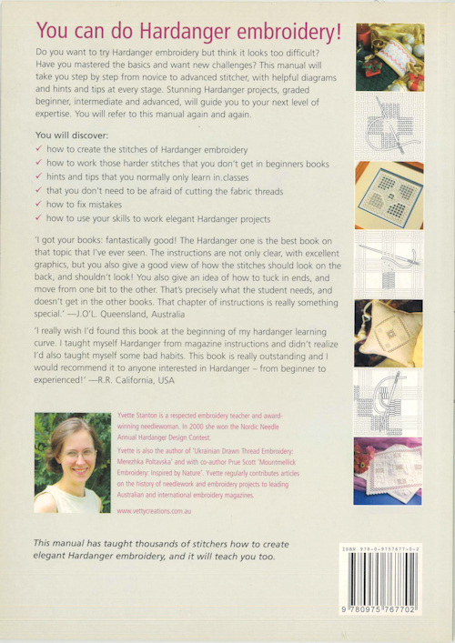 この本では、ハーダンガー刺繍の初心者から上級者まで役立つ図解やコツの解説から、間違いの修正の仕方や端の処理の仕方など、教室でしか学べないようなヒントまで掲載しています。