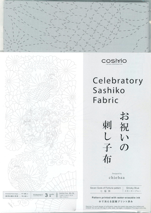 ホーム | 刺しゅう布 > 刺し子布・花ふきん[10672] ルシアン COSMO お祝いの刺し子布 七福神 / スモーキーブルー