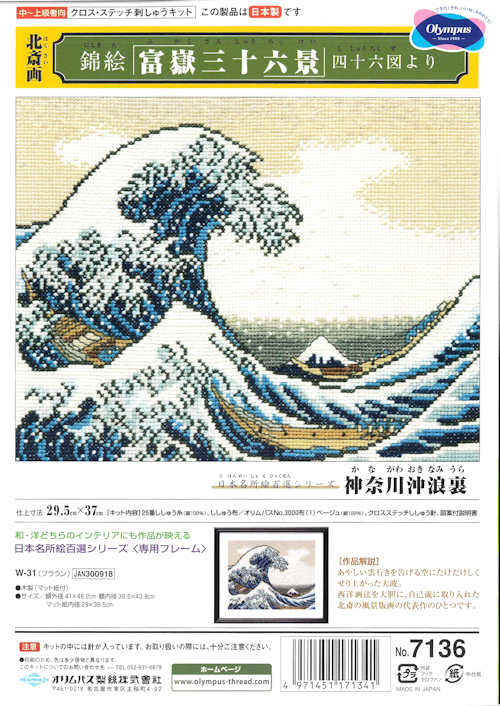 ホーム | 刺繍キット > クロスステッチ[4333] オリムパス クロスステッチししゅうキット 北斎画 富嶽三十六景 神奈川沖浪裏